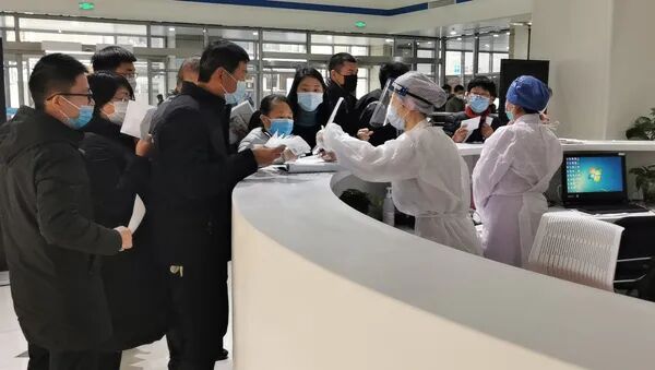 疫情期间,护士长及时评估护理工作量,对人员结构进行重新调整,分为预检分诊组、常规工作组,远程随访组三个护理组。根据工作需求合理调配人力资源,在保证 门诊工作正常运行的情况下,全力保障预检分诊处工作。1月底,天气严寒,一楼预检分诊处更是寒气逼人,因预检分诊工作量大,任务重,急需人手,孙慧敏、张 凤等5位哺乳期护士,产假刚结束,第一时间便报名参加了预检分诊工作,杨琳、唐倩云主动请缨。以苏主任、朱队长为核心的保安人员认真负责,加班加点,全面 保障门诊工作,全体工作人员万众一心,众志成城投入了这场没有硝烟的抗“疫”战争。为方便患者,开辟了为老弱病残孕患者绿色通道,提前放行。所有发热患 者,由总巡护士护送至急诊或发热门诊,进行交接,并安排人员进行跟踪随访,针对就诊的武汉人员,安排专人进行跟踪随访并进行心理疏导。门诊人秉承“为病人 服务不是一阵子,而是一辈子”的研究所精神,想患者之所想,急患者之所急,心系患者健康,保证患者安全。